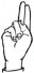 На ћирилици написано ДРАГАНА РЕСКОВИЋ састоји се из 15 слова [?]. Исписано ћириличном једноручном азбуком за глувонеме: